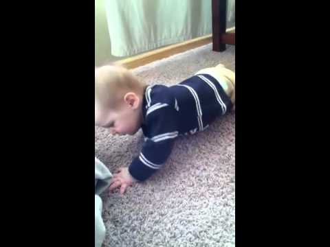 I was washing dishes in the kitchen and Aiden thought he'd join me. Did he take the most direct route? No. I look over and he his stuck under our coffee table. By the time I got the camera, he was already almost over. I was still pretty impressed that he got his legs over!